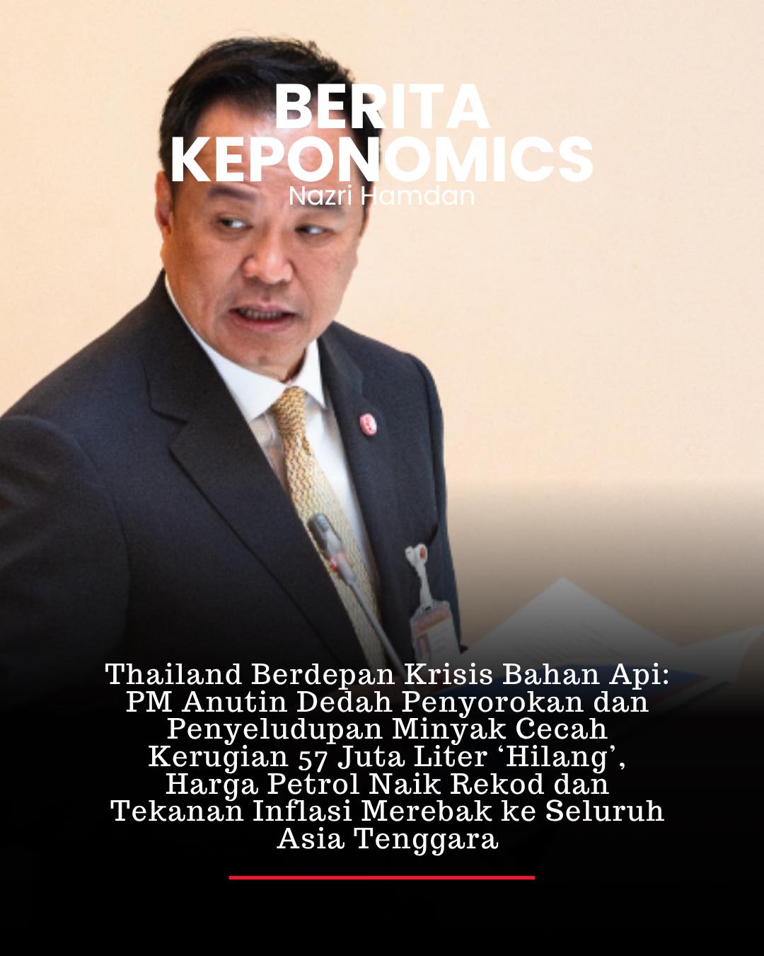Perdana Menteri Thailand, Anutin Charnvirakul, telah mengaitkan masalah kekurangan bekalan bahan api dengan aktiviti penyorokan minyak dan penyeludupan rentas sempadan yang berleluasa, yang dianggap sebagai punca utama tekanan terhadap harga bahan api domestik.