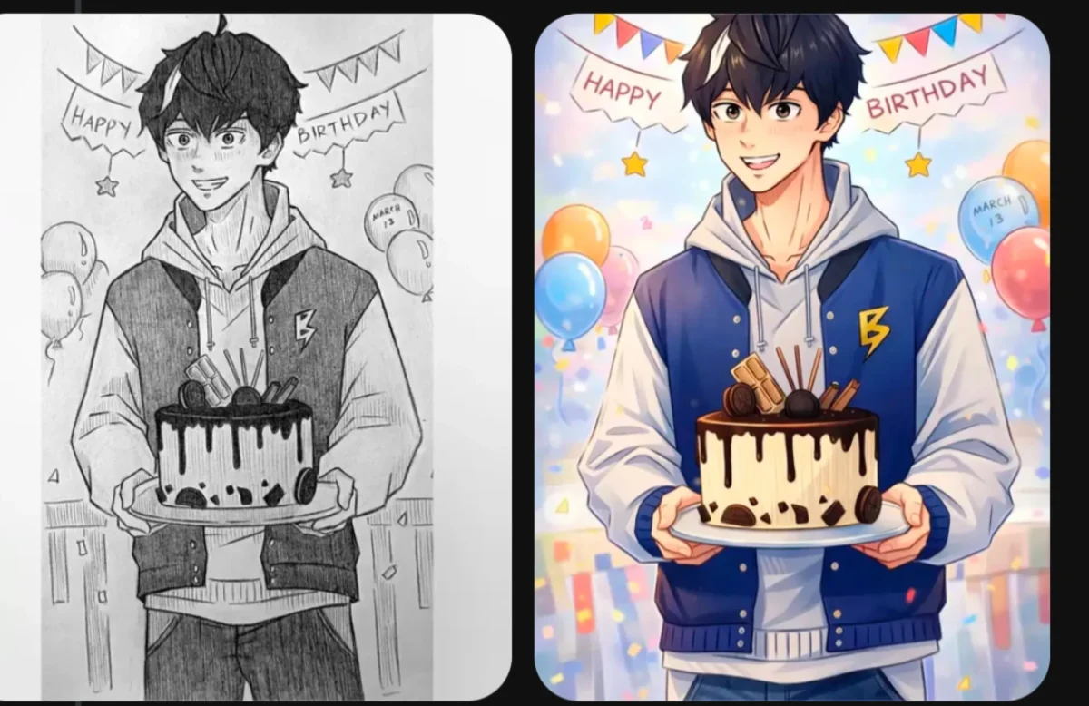 Gambar yang dilampirkan pada hantaran menunjukkan lukisan hitam-putih yang telah siap diubah menjadi versi berwarna selepas pelanggan tersebut menggunakan program AI.