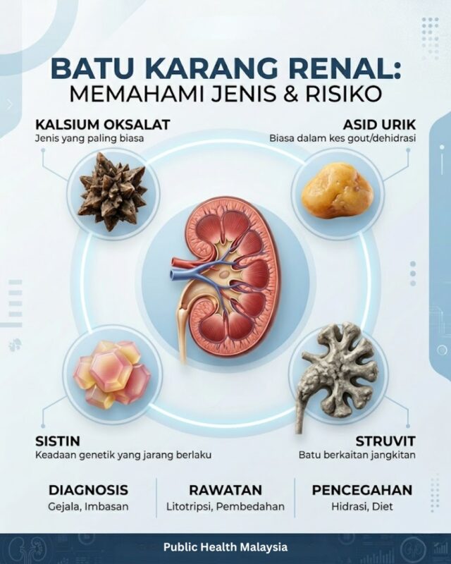 Oleh itu, bagi mereka yang pernah mengalami masalah batu karang, pertanyaan penting bukan sekadar “sudah keluar atau belum”, tetapi “batu ini jenis apa?”. Langkah pencegahan perlu disesuaikan dengan jenis batu yang dihadapi. Ada yang perlu mengawal pengambilan garam, ada yang perlu memeriksa diet khusus, ada yang perlu merawat jangkitan, dan ada yang memerlukan penilaian lebih lanjut disebabkan faktor keturunan.