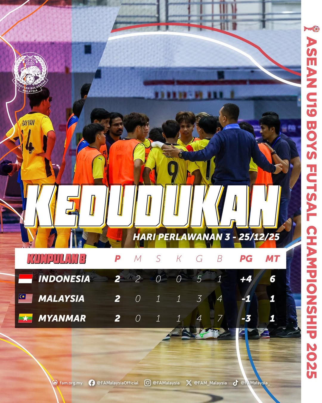 - Selepas Hari Pertandingan 3 pada Khamis, 25 Disember 2025