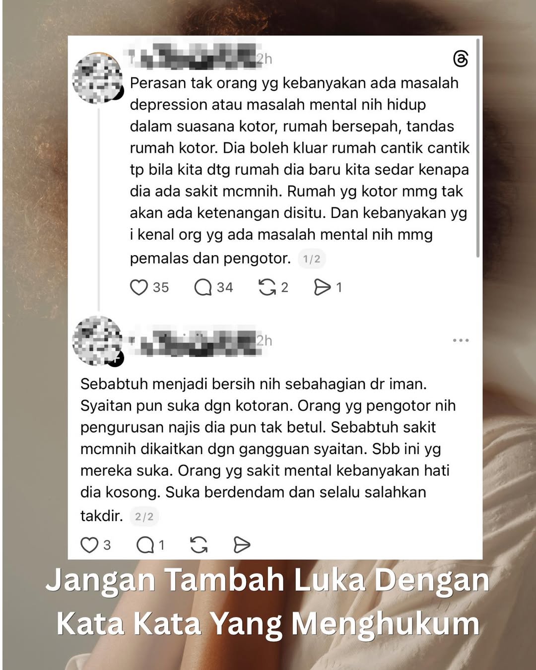 Sebab itu, kita perlu lebih berhati-hati ketika bercakap tentang orang yang mengalami masalah mental.