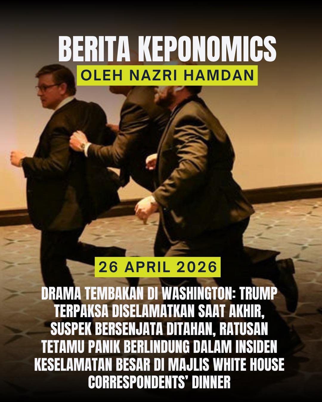 Presiden Amerika Syarikat, Donald Trump, dilaporkan selamat selepas insiden tembakan yang terjadi di luar majlis makan malam tahunan White House Correspondents’ Association di Washington, DC.