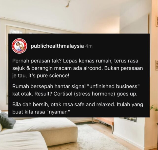 Setelah rumah dikemas, otak kita merasa lebih tenang. Kebisingan dalam fikiran berkurang. Nafas menjadi lebih panjang dan bahu terasa ringan. Itulah sebabnya kita berasa “nyaman”, walaupun tidak ada perubahan besar, hanya dengan menyusun dan membersihkan.
