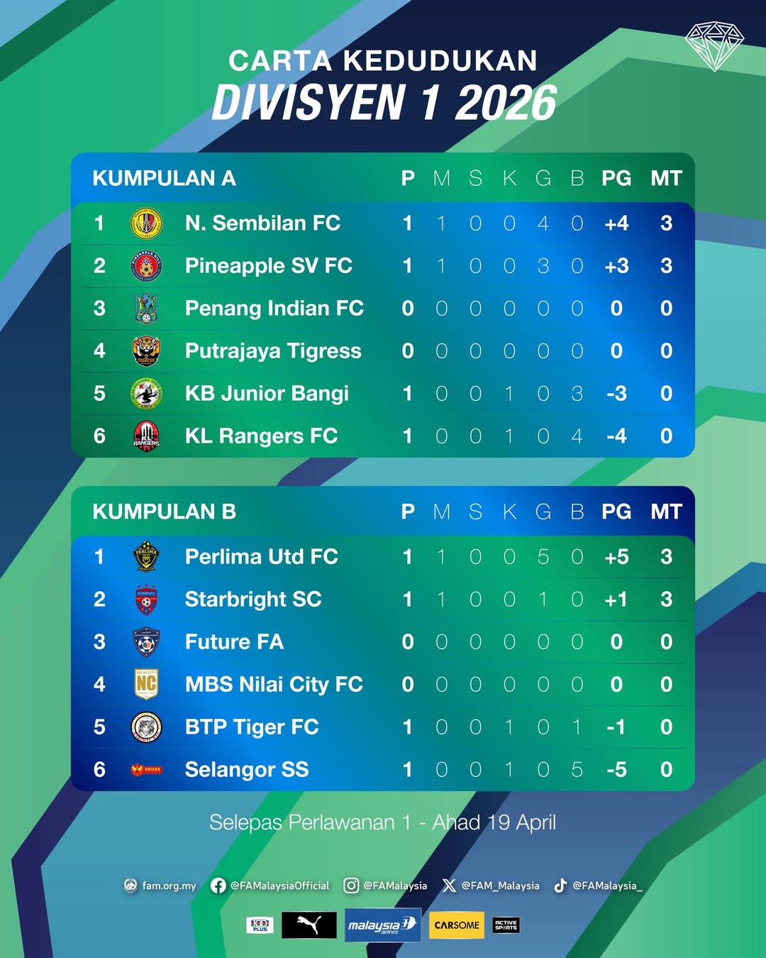 ▶️ Perlawanan 1 telah berlangsung pada Ahad, 19 April 2026
