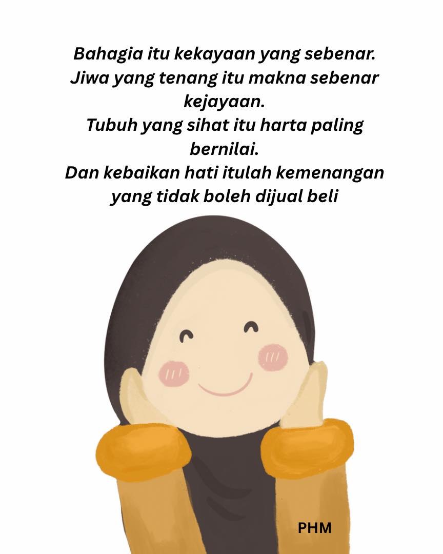 Kebahagiaan adalah kekayaan sejati. Ketika bangun pagi dengan rasa syukur, pulang ke rumah kepada mereka yang menyayangi, atau ketawa bersama keluarga walaupun dalam kesederhanaan, itu adalah rezeki yang sering terlepas pandang.