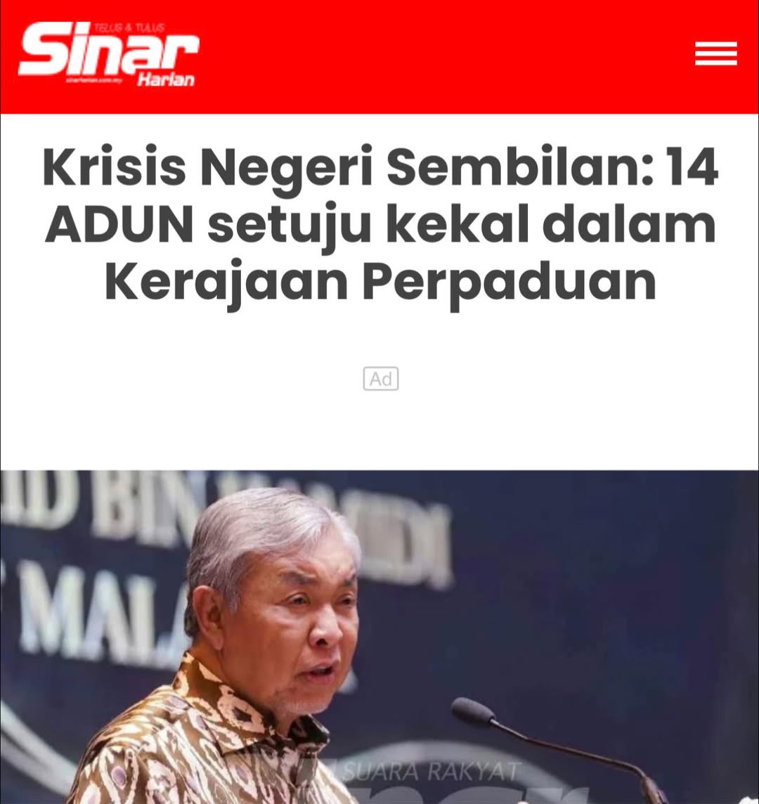Perkembangan ini dilihat meredakan ketegangan politik di Negeri Sembilan buat sementara waktu, tetapi situasi ini tetap menjadi perhatian kerana ia mencerminkan dinamik dalaman yang masih rapuh dalam lanskap politik semasa.