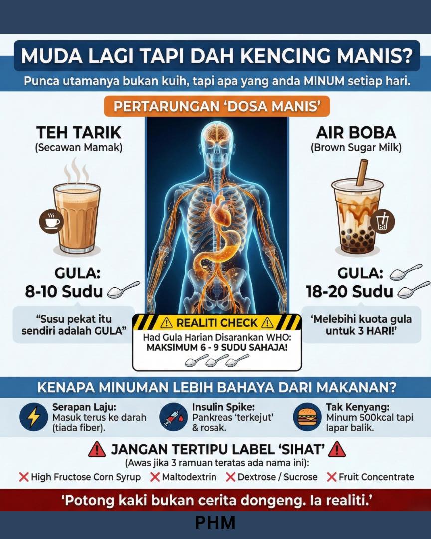 Kita selalu diingatkan untuk mengelak makanan manis kerana kencing manis, tetapi kita sering lupa tentang ancaman besar dalam bentuk minuman yang kita ambil setiap hari.