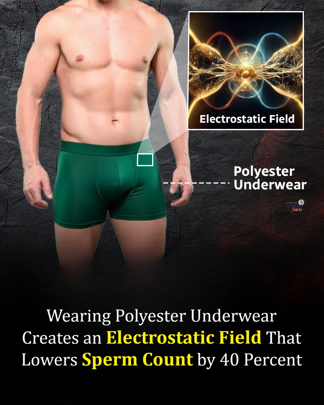 Satu kajian terkini mendapati bahawa pakaian dalam yang diperbuat daripada poliester menghasilkan cas elektrostatik yang mengganggu fungsi testis dan secara signifikan menurunkan jumlah sperma. Fabrik sintetik ini juga memerangkap haba, yang boleh menyebabkan kematian sel-sel yang sihat. Oleh itu, disarankan agar anda segera beralih kepada pakaian dalam 100% kapas.