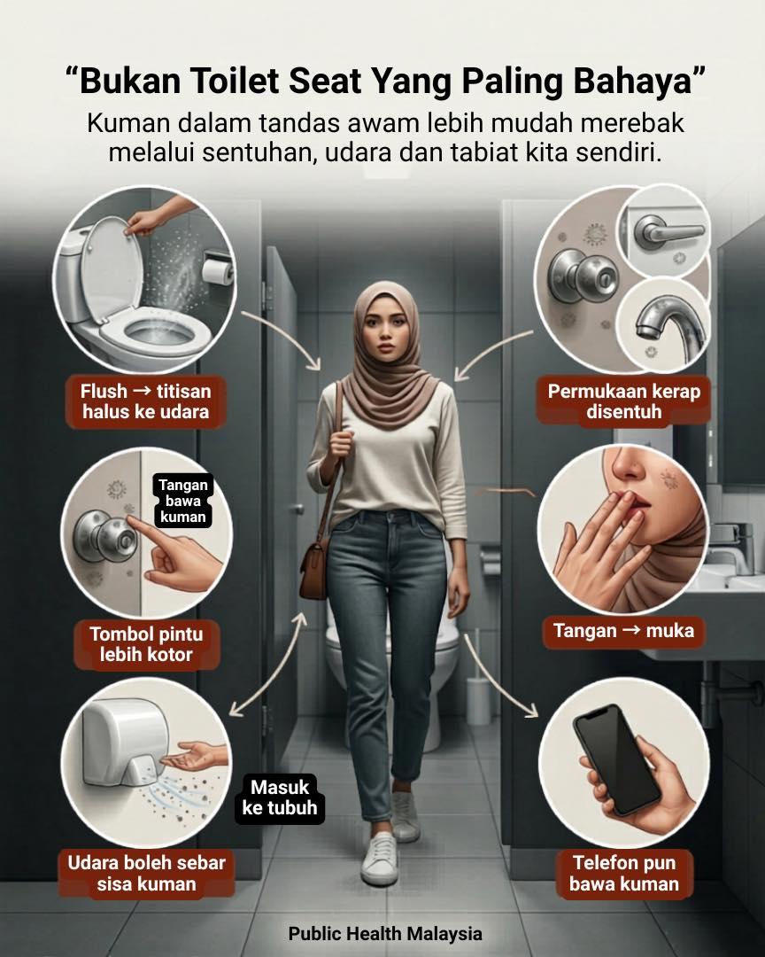 Tandas awam bukan tempat untuk ditakuti tetapi harus dihadapi dengan bijak. Tidak semua yang nampak kotor berisiko, dan tidak semua yang kelihatan bersih benar-benar selamat.