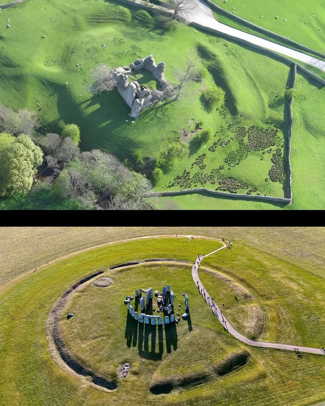 Mengenai usia tapak tersebut, runtuhan yang ada hari ini berasal dari abad kedua belas. Namun, bangunan ini berdiri dalam struktur yang jauh lebih tua, dan mungkin pernah mengandungi bulatan batu megalitik. Gambar udara menunjukkan bahawa ia dikelilingi oleh parit dan lohong bulat, dengan jurang-jurang, dan parit tersebut terletak di dalam lohong, menjadikannya tidak praktikal untuk pertahanan. Walau bagaimanapun, reka bentuk ini adalah mirip dengan jenis bulatan dan lohong yang mengelilingi bulatan batu yang dibina sekitar 4500 tahun yang lalu, seperti Stonehenge.