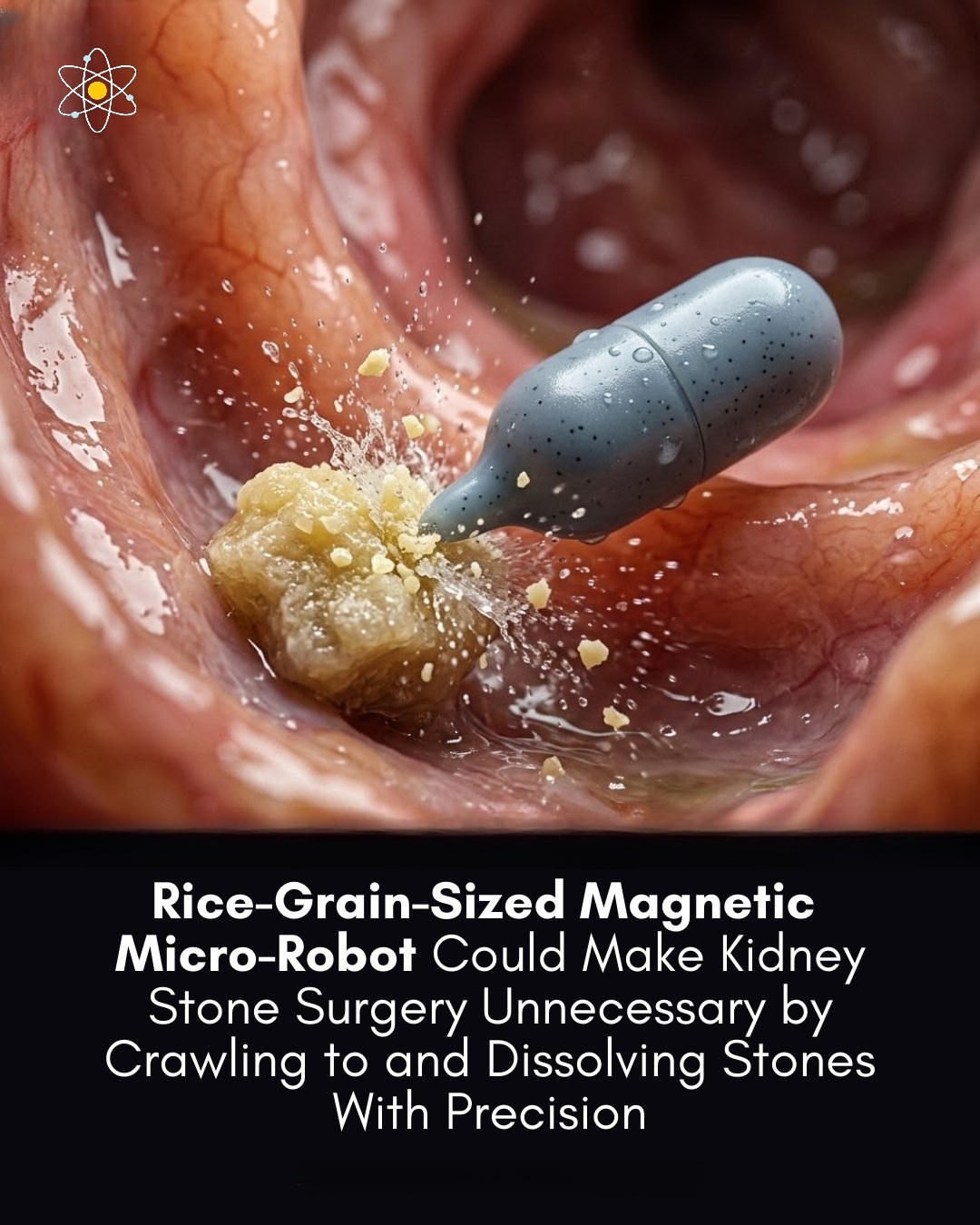 Penyelidik dari Universiti Cina Hong Kong dan Universiti Jiaotong Xi’an (2023–2024) baru-baru ini memperkenalkan mikro-robot lembut yang dikawal oleh magnet, direka khusus untuk rawatan urologi tanpa invasif, dengan tumpuan utama pada pengeluaran batu karang ginjal.
