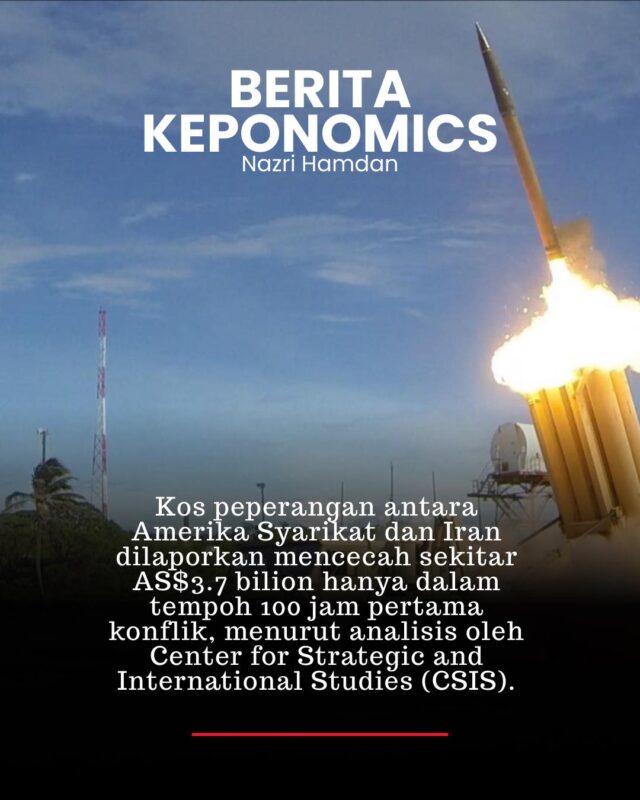 Kos peperangan antara Amerika Syarikat dan Iran dilaporkan mencapai kira-kira AS$3.7 bilion dalam 100 jam pertama konflik, berdasarkan analisis oleh Center for Strategic and International Studies (CSIS).