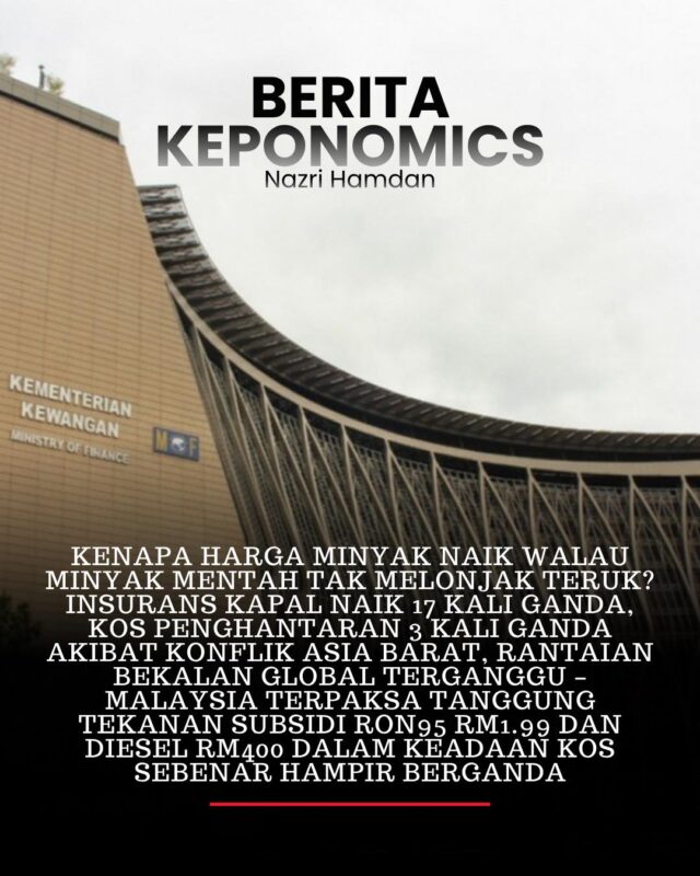 Kerajaan turut meningkatkan bantuan subsidi diesel kepada RM400 bagi April 2026, yang menunjukkan tekanan fiskal yang semakin meningkat untuk menampung kenaikan kos global ini.