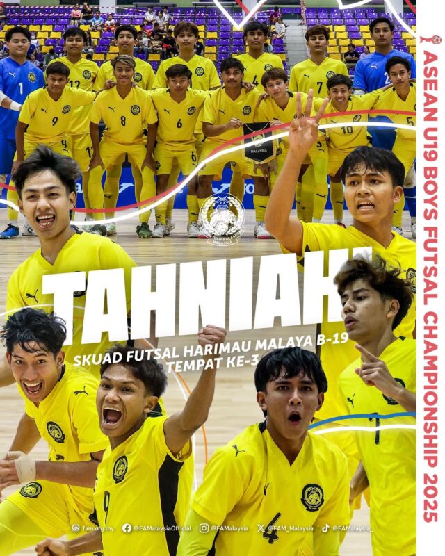 Pasukan Futsal Harimau Malaya B-19 yang dilatih oleh Rakphol Sainetngam telah berjaya mendapatkan tempat ketiga dalam Kejuaraan Futsal B-19 ASEAN 2025 yang berlangsung di Nonthaburi, Thailand, selepas mengalahkan Vietnam petang tadi.