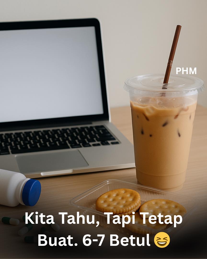 Kita semua melalui saat-saat 6 7 ini. Berazam untuk menjaga diet, tapi nasi lemak depan mata seolah-olah memanggil. Berjanji untuk tidur lebih awal, tetapi masih terjaga hingga jam satu pagi melihat video kucing. Kata mahu kurus, tetapi memberi ganjaran diri dengan boba selepas jog. Inilah realiti hidup kita.