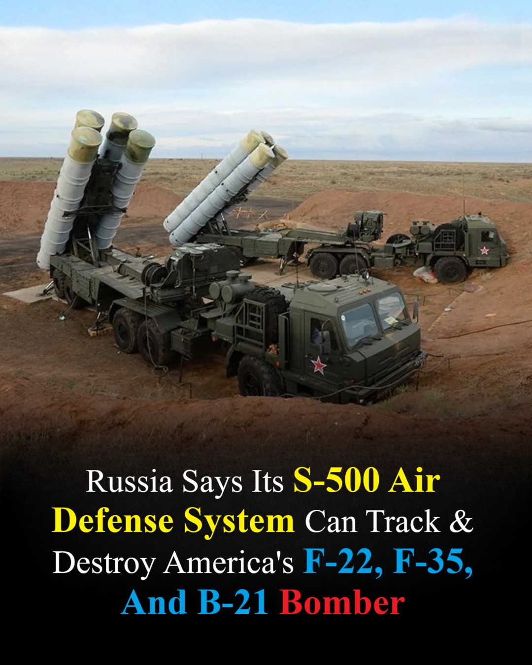 Sistem pertahanan udara Russia, S-400 dan S-500, mendakwa mampu mengesan dan menewaskan jet pejuang siluman Amerika Syarikat seperti F-22, F-35, dan pengebom B-21. S-500, khususnya, boleh mengesan pesawat pada jarak 370 batu dan dapat menangkis sepuluh peluru berpandu supersonik yang bergerak pada kelajuan tinggi.
