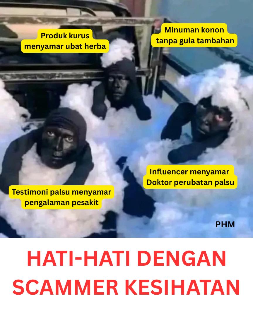 Zaman kini, bukan penjenayah saja yang bijak menyamar; penipu dalam bidang kesihatan juga sangat licik. Pembungkusannya cantik, berwarna pastel, dan menyematkan istilah herba serta sunnah, namun isinya penuh dengan bahan terlarang yang boleh merosakkan hati dan buah pinggang.