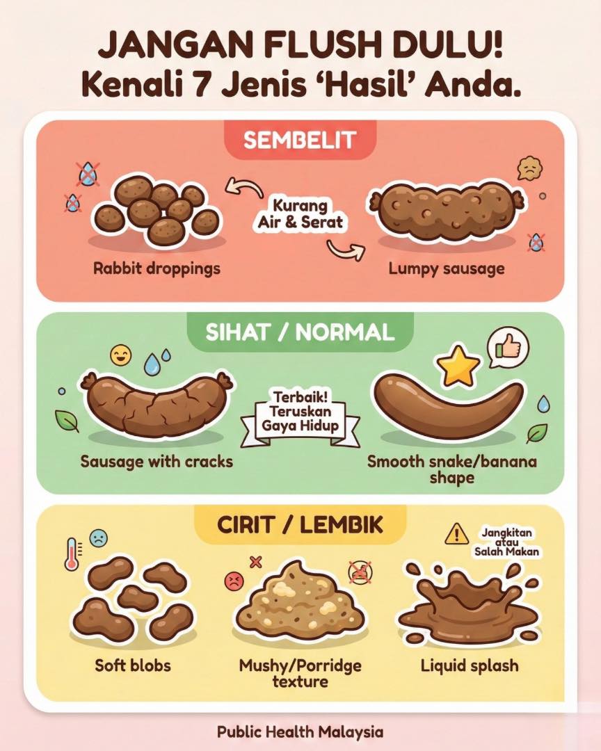 Jadi, esok pagi selepas ‘membuang’, ambil masa 2 saat untuk melakukan pemeriksaan kualiti.