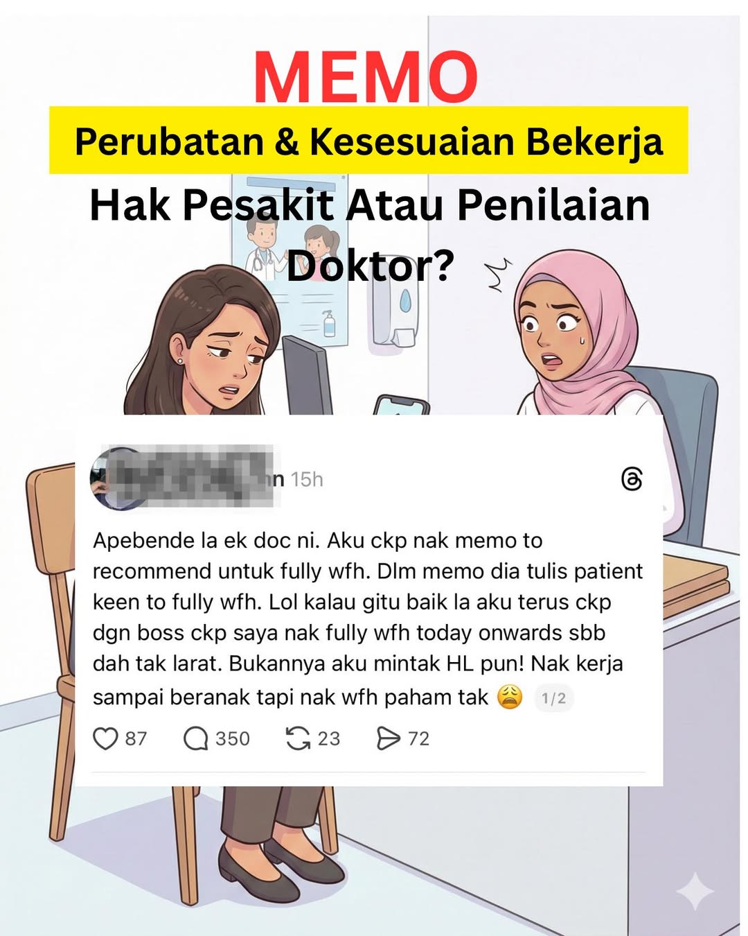 Tanya: “Doktor, adakah wajar jika saya memohon WFH untuk sementara waktu?” Ini memberikan ruang kepada doktor untuk menilai faedah dan risiko.