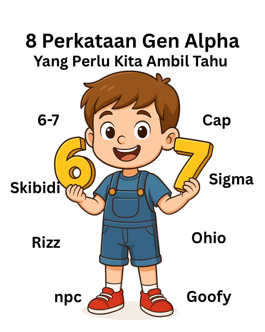 Kanak-kanak Gen Alpha sekarang tidak menggunakan bahasa seperti kita dahulu. Untuk situasi pelik: 6–7, untuk lawak: skibidi, untuk daya tarikan: rizz, untuk skeptikal: cap, dan untuk nampak hebat: sigma.