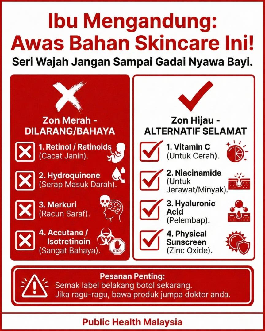 PublicHealthMalaysia #IbuMengandung #SkincareSelamat #KesihatanJanin #Retinol #KKM #FaktaUbat
