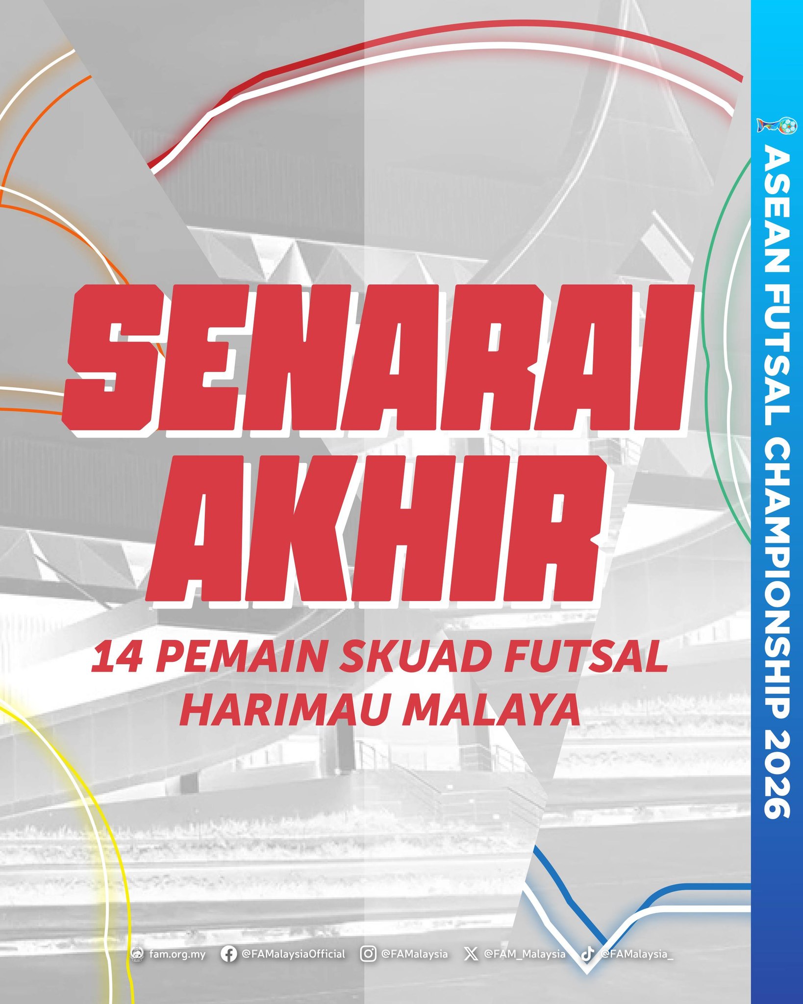 Senarai Akhir 14 Pemain Futsal Kebangsaan Pilihan Ketua Jurulatih
