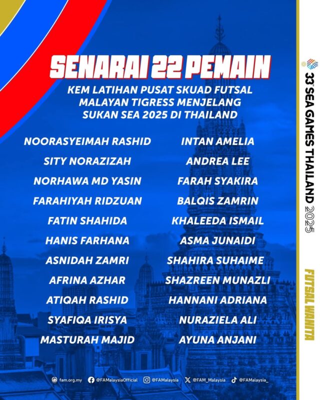 Senarai 22 Pemain untuk Kem Latihan Pusat Skuad Futsal Malayan Tigress sebagai Persiapan Sukan SEA 2025 di Thailand