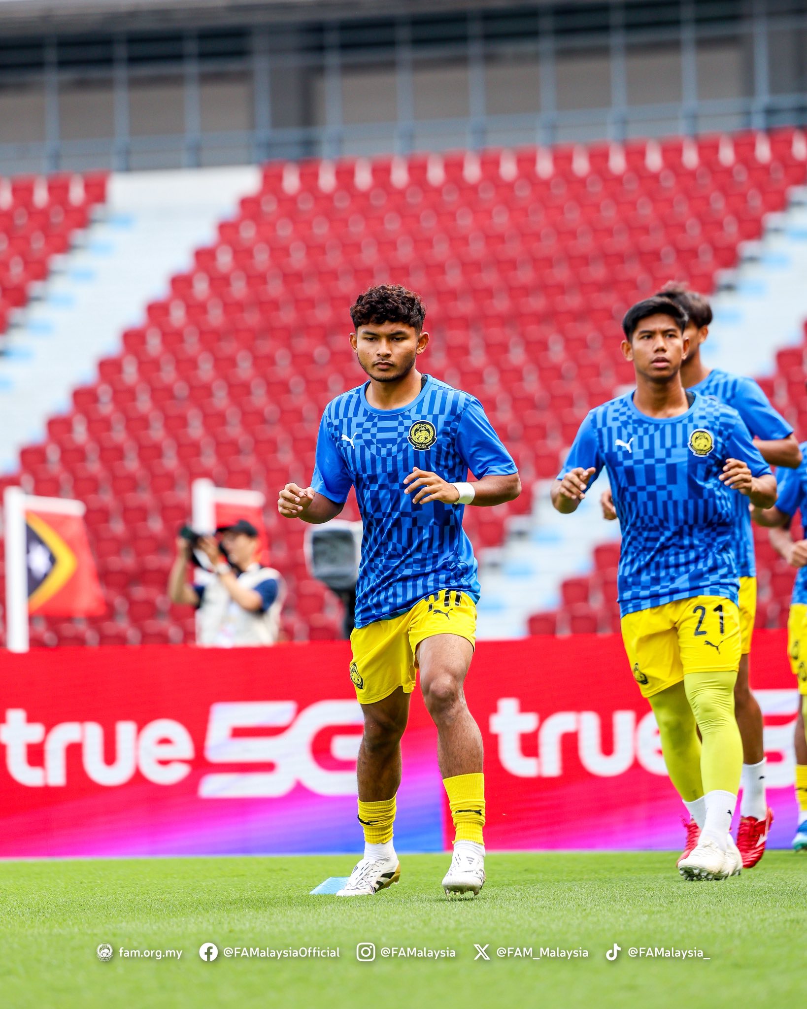 📸 Skuad Harimau Malaya B-23 di bawah arahan Nafuzi Zain sedang melaksanakan sesi pemanasan badan kira-kira 20 minit sebelum memulakan perlawanan menentang Vietnam dalam Kumpulan B, pada saingan Bola Sepak Lelaki Sukan SEA 2025 di Rajamangala, Bangkok, bermula jam 5.00 petang ini (Waktu Malaysia).