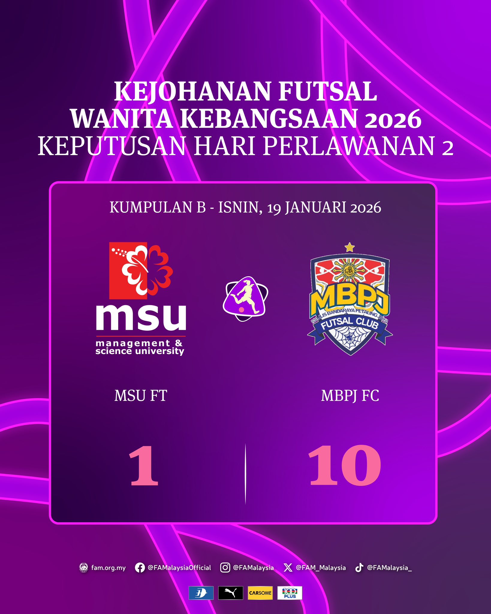 Kejohanan Futsal Wanita Kebangsaan 2026 • Isnin, 19 Januari 2026 • Kumpulan B