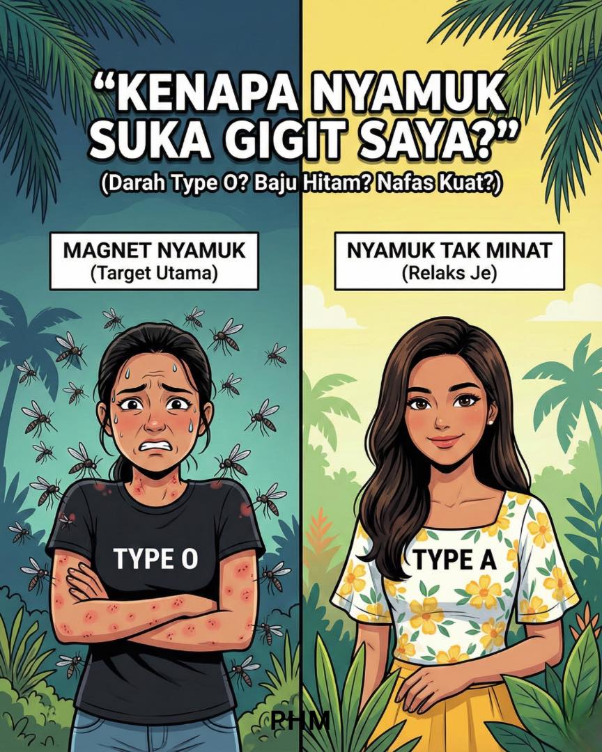 Pernahkah anda mengalami situasi seperti ini? Sedang bersantai di mamak atau taman, tiba-tiba anda seorang yang lebih banyak menggaru. Kawan di sebelah? Tenang saja, tak ada nyamuk hinggap padanya.