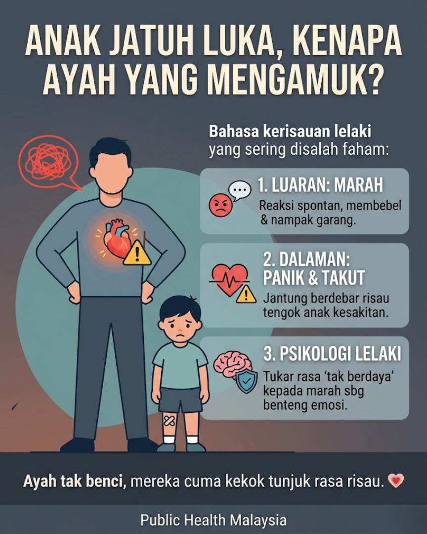 Kepada para bapa muda hari ini: Mari kita ubah pola ini. Apabila anak mengalami kecederaan atau sakit, tahanlah rasa marah itu. Apa yang mereka perlukan ialah pelukan untuk merasa selamat, bukan leteran.