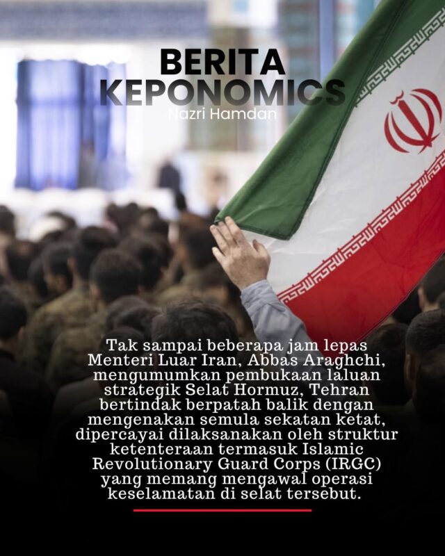 Tak lama selepas pengumuman Menteri Luar Iran, Abbas Araghchi, mengenai pembukaan laluan strategik Selat Hormuz, Iran bertindak untuk mengenakan semula sekatan ketat. Tindakan tersebut dipercayai dilakukan oleh pihak tentera, termasuk Islamic Revolutionary Guard Corps (IRGC), yang memiliki tanggungjawab mengawal keselamatan di selat itu.