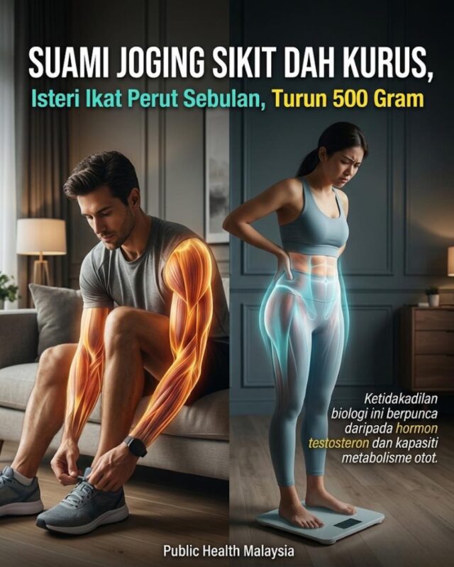 Wahai isteri, jangan cepat berputus asa atau menyalahkan diri sendiri. Ketidakadilan ini bukan menunjukkan kegagalan diet anda, tetapi ini adalah fakta sains biologi dan perbezaan genetik antara lelaki dan wanita, terutamanya dengan hormon Testosteron dan jisim otot.
